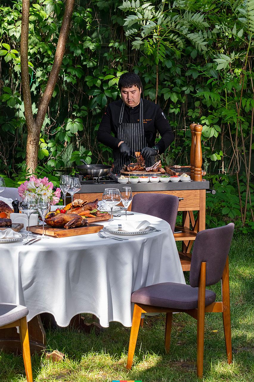 Меню «Тандира» — это настоящая гастрономическая путешествие, где премиальное мясо из разных уголков мира готовится в тандыре, на мангале или прямо перед вами, в изысканном стиле татаке. С четверга по воскресенье шеф радует гостей авторскими блюдами: ароматной шурпой, выдержанным украинским рибаем, сочной думлямой и легендарным маргиланским пловом. Любимые хачапури, хинкали, чебуреки и урама-кебаб — лишь часть кулинарных наслаждений, дополненных богатым выбором свежих овощей и зелени.